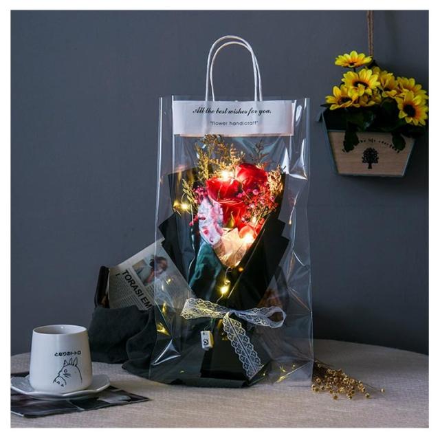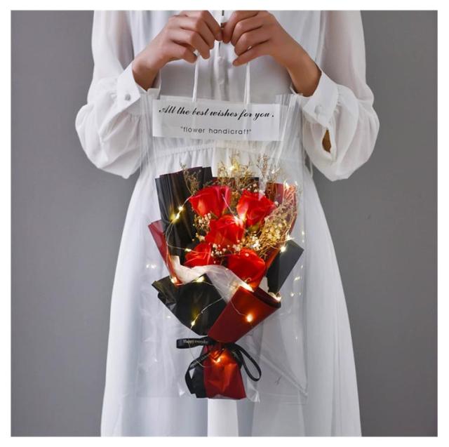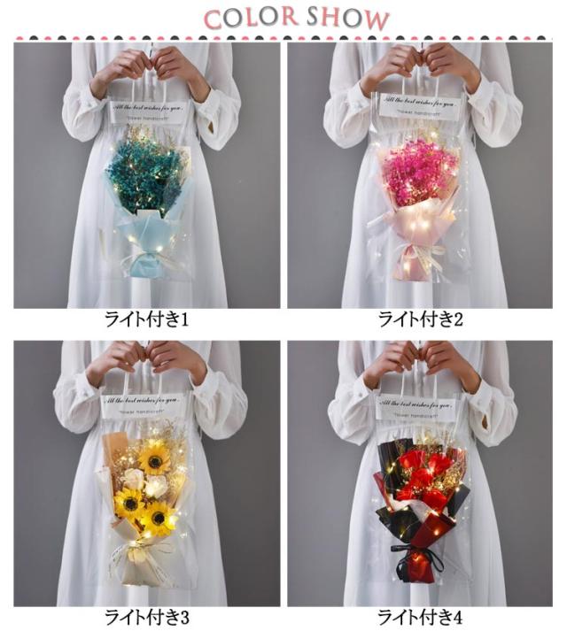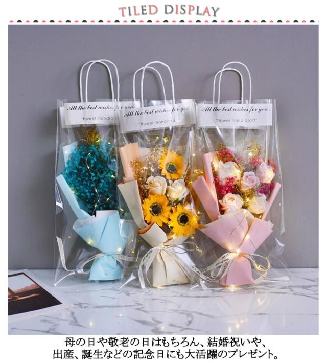 フラワー 石鹸花 卒業 ソープフラワー 祝い ブーケ ソープ シャボンフラワー 花束 母の日 ギフト バレンタインデー ドライフラワー 結婚記念日 ソープ 薔薇 ひまわり ラッピング袋付き 枯れない花 新かすみ草 ライト付き アレンジメント