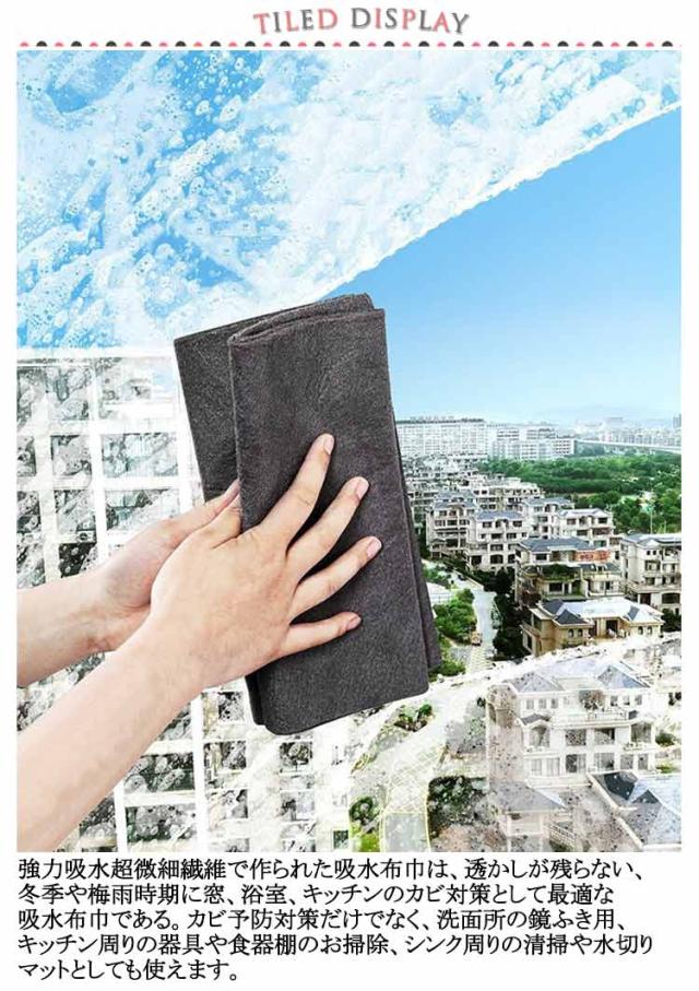| 【100枚入り】 拭き跡無し!洗剤不要!魔法のガラス用ふきん! 強力吸水超微細繊維で作られた吸水布巾は、透かしが残らない、冬季や梅雨時期に窓、浴室、キッチンのカビ対策として最適な吸水布巾である。カビ予防対策だけでなく、洗面所の鏡ふき用、キッチン周りの器具や食器棚のお掃除、シンク周りの清掃や水切りマットとしても使えます。 吸水性に優れ、洗剤を使わずに汚れを落とすことができる高性能なクリーニングタオル。微細な汚れや表面の汚れを簡単に除去できる超微細繊維布。水で拭くだけで汚れが落ち、洗剤と一緒に使うこともできます。 このハイテクの魔法布巾は、驚くほどの吸水力を持ち、迅速に乾燥します。窓ガラスや鏡、台所や浴室の清掃に最適です。 濡らし、拭き、洗い流し、繰り返し使用するだけです。複雑な手順は必要ありません。必要な場所をきれいにするために使用できます。通常清潔に使用しているように、乾湿両用です。 窓、コンロ、車、フロントガラス、家具、家電など、さまざまな物に幅広く使用できます。 また、ガラス、ステンレススチール、木製家具など、さまざまな表面に使用できます。 | |