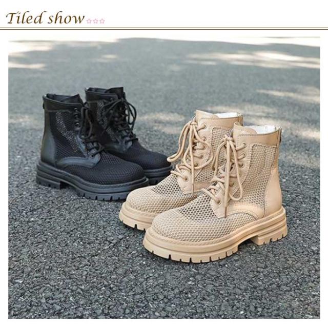 太いヒール 軽量 ショートブーツ サマーブーツ チャンキーヒール 透け感 ミドルブーツ ヒール5cm レディース かわいい メッシュ ハイカット ブーツ ブーティ 美脚 春 秋 ブーツ 厚底 疲れにくい 靴 カジュアル 痛くない 歩きやすい