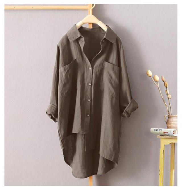 前後差 長袖シャツ 麻 無地 トップス レディース リネン 送料無料 オーバーサイズ リネンシャツ ビッグシルエット ラウンド裾 羽織り ホワイト ワイン ブラック グレー グリーン コーヒー ネイビー