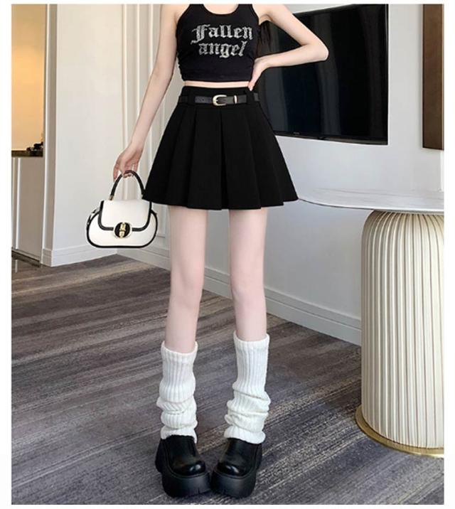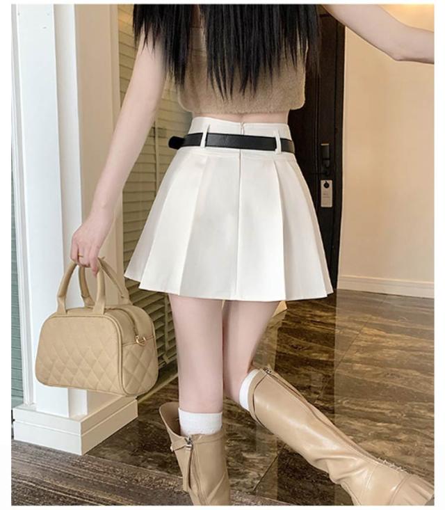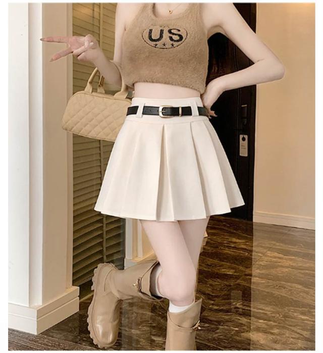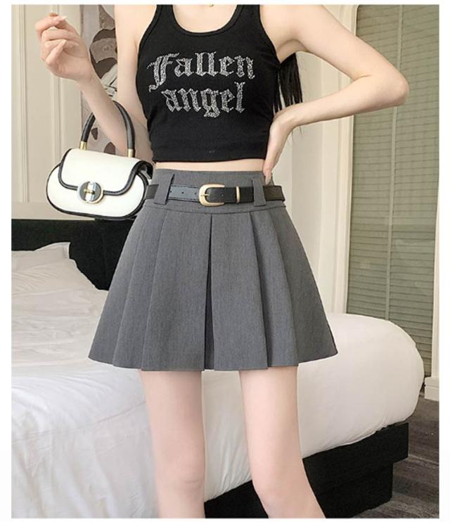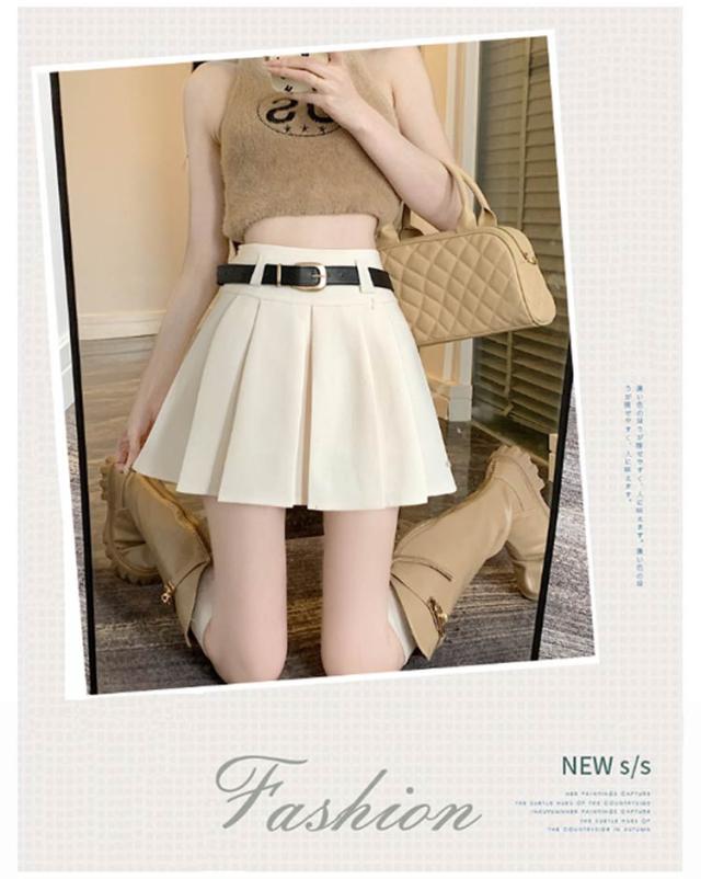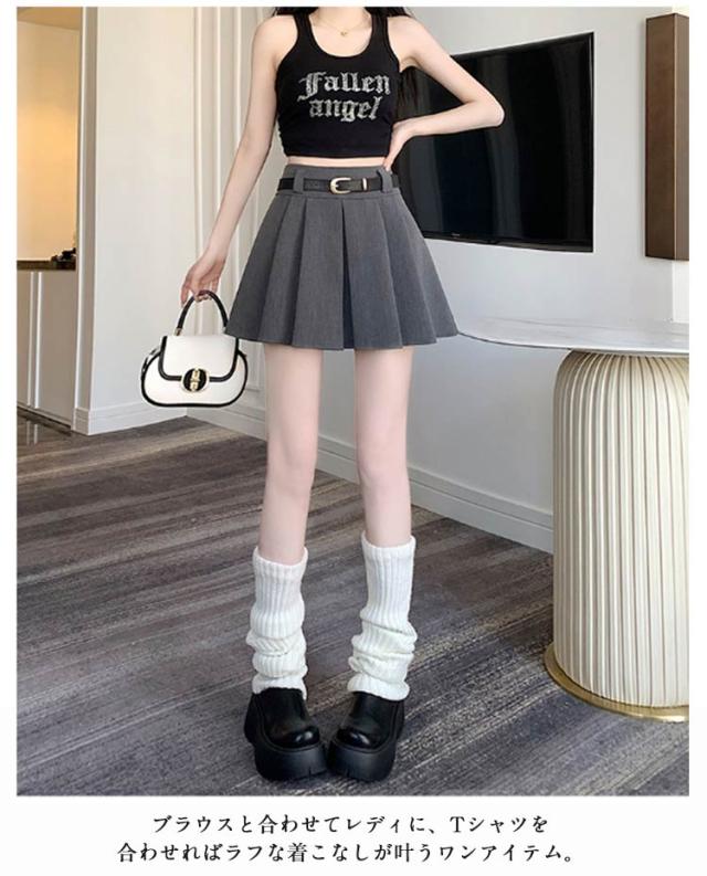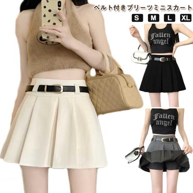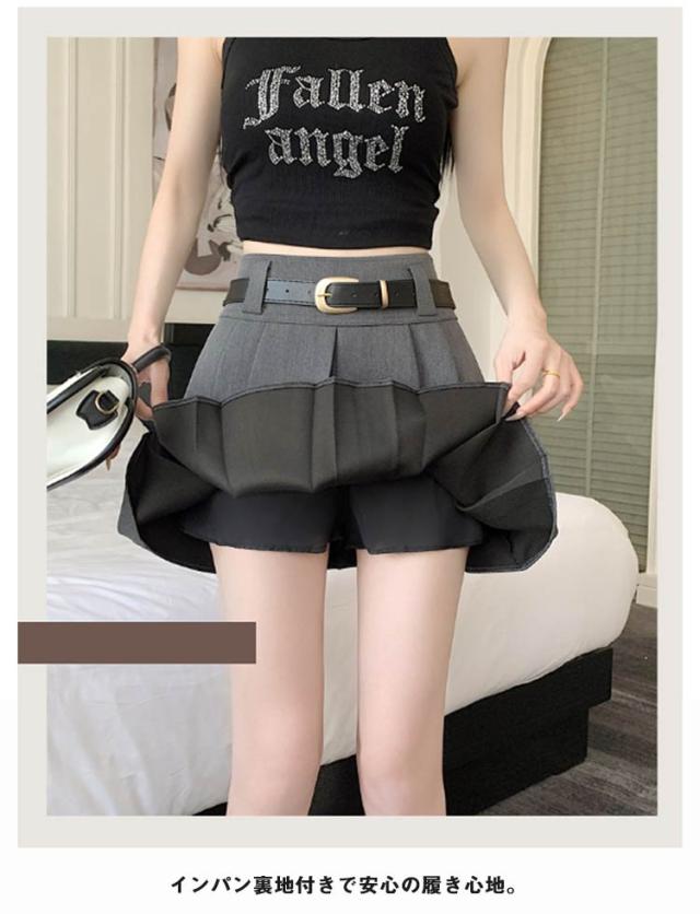 Aライン レディース カジュアル ハイウエスト ミニスカート ベルト付き プリーツミニスカート 膝上丈 着痩せ プリーツミニスカート インナーパンツ付き 裏地付き 美脚 フレアスカート 無地 ダンス ショート丈 通学 通勤 文化祭 韓国風 春夏