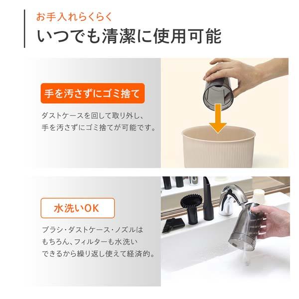 | セット内容 | 本体、接続パイプ×2、USB充電ケーブル(コード長74cm)、ブラシ、床ブラシ、フラットノズル+ブラシ | |