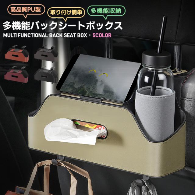 多機能シートバックボックス 車用 車収納ボックス ドリンク ホルダー 水筒/ボトル収納 後部座席 ティッシュケース ティッシュホルダー