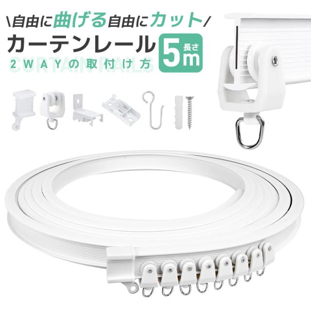 手で曲がるカーテンレール 目隠し 軽量 リビング 小窓 寝室用 出窓用 子供部屋 DIY 白 設置簡単 北欧 新居 間の仕切り レール 切る 5メートル 静音タイプ 安定性 コーナー