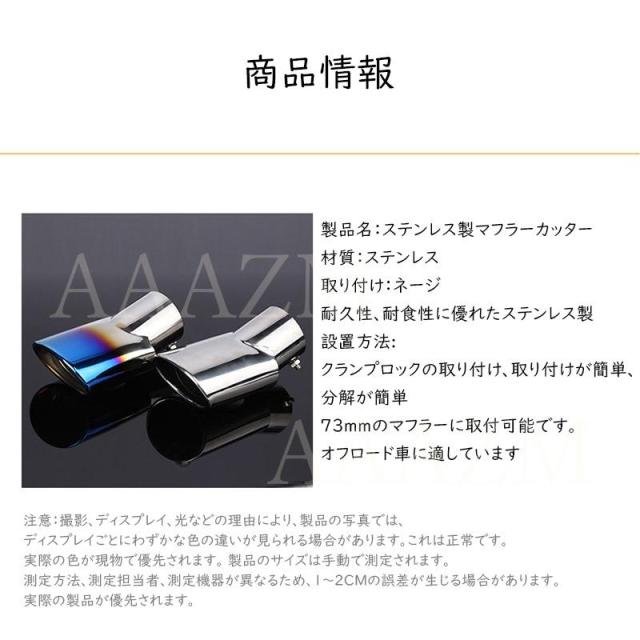 商品機能:存在感抜群 マフラーカッター 自動車 車載用 車載 カー用品 車用品 中型自動車 小型自動車 軽自動車 車内用品 ドレスアップ 耐久性 耐食性
