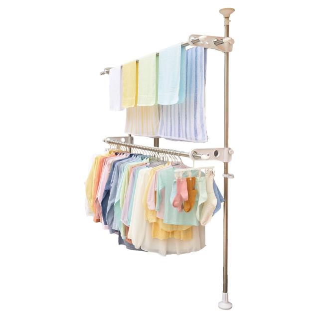 天馬 大きな脚形状と吸盤状クッションでしっかり固定でき、上下に引っ張るだけで簡単設置可能 洗濯物干し 組立式 屋外用 突っ張り式物干