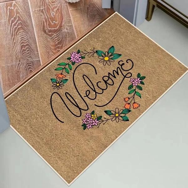 花柄のウェルカムマット,滑り止めバスマット,色あせに強い,洗える家の装飾カーペット,1個