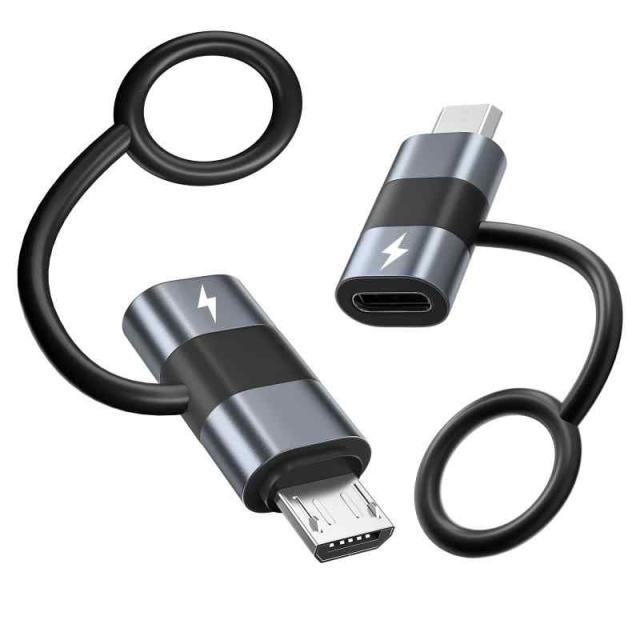 EKVUVKE マイクロUSB タイプC 2個入り, 5V=2.1A TypeC Micro USB 変換 10W 急速充電と480Mbps データ同期, 紛失防止設計 タイプc マイクロusb Xperia、Galaxy S7 Edge/S6、Nexus、P10/P9 Lite等Micro USB設備対応 ストラップ付, グレー