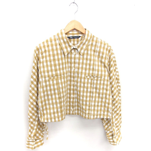 【中古】ザラ ZARA シャツ ブラウス クロップド ステンカラー リボン 薄手 長袖 L カーキ ホワイト 白 /TT レディース