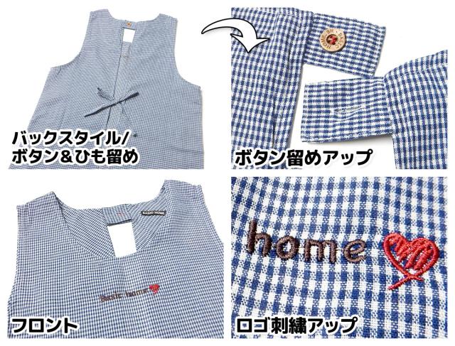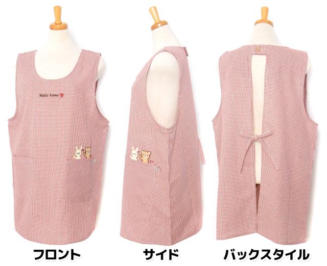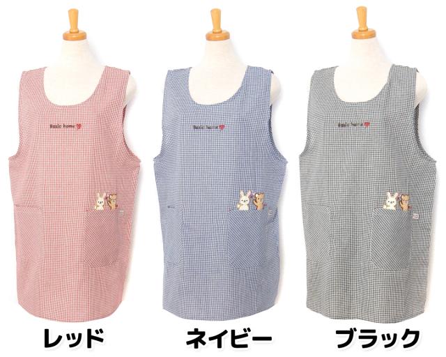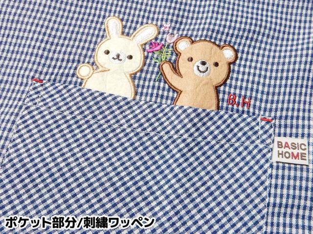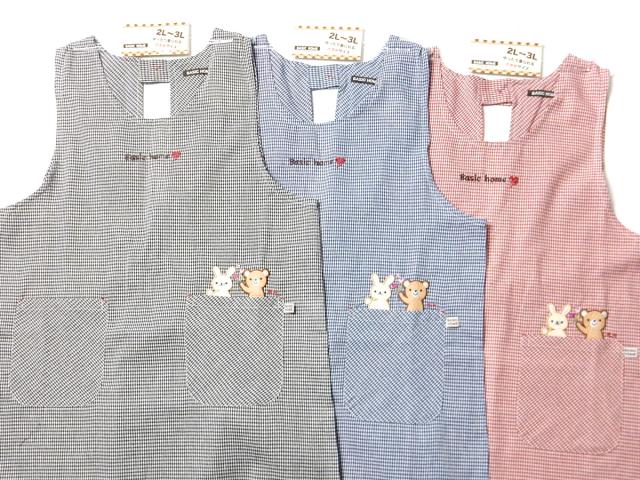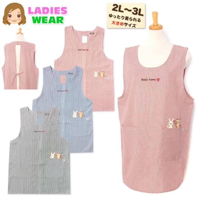 【送料無料】【大きいサイズ】婦人 レディース ラン型 エプロン 後ろボタン&ひも留め ギンガムチェック柄 うさぎ&くま刺繍ワッペン ポケット付き 2L-3L sl-0555【メール便対応】