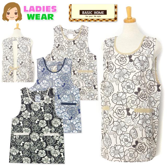 婦人ラン型花柄エプロン♪脱ぎ着が