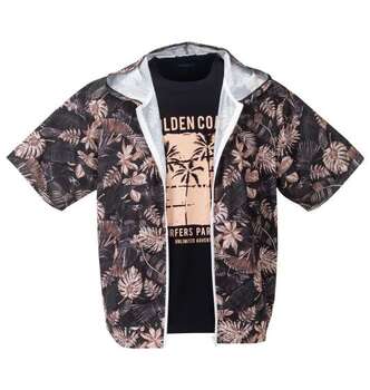 大きいサイズ COLLINS メッシュボタニカル柄プリント半