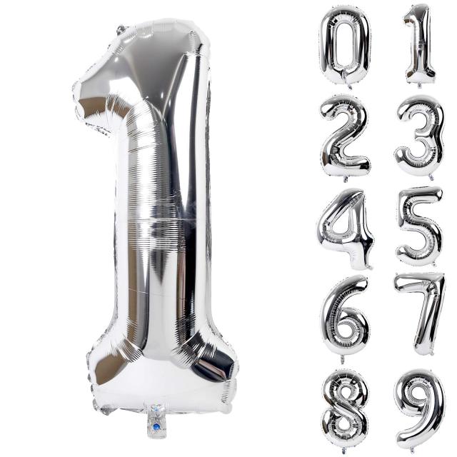 Lausatek バルーン アルミ風船 シルバー 数字1 ナンバー 40インチ 大きい 誕生日 ハッピーバースデー 飾り付け ウェディング 記念日 パー