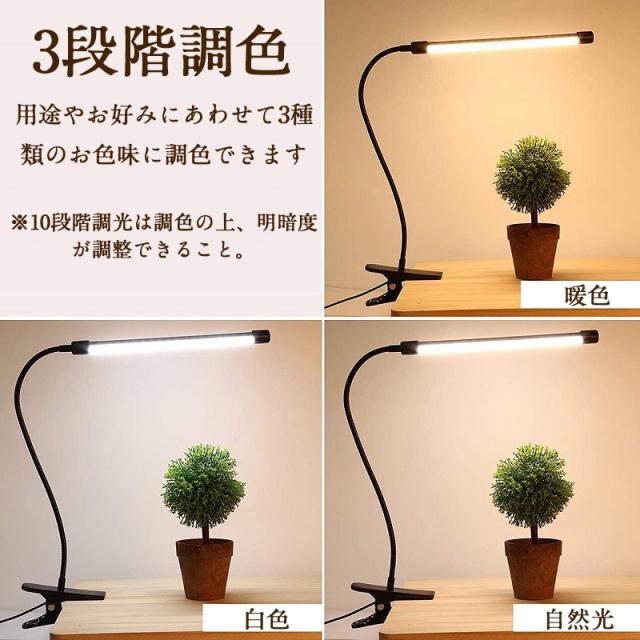 デスクライト おしゃれ LED クリップ クランプ 子供 明るい 卓上ライト 小型 オフィス 学習机 360度 回転 アーム 読書灯 ブックライト