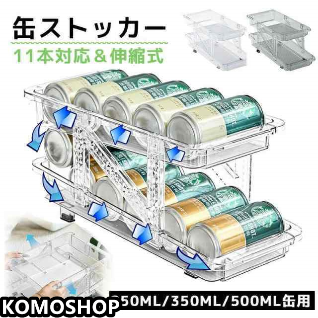 缶ストッカー 缶収納ラック 缶ビールホルダー 250ML/350ML/500ML缶用 10本対応 伸縮式 冷蔵庫用 収納ラック 二重仕上げラック 省スペース 取り出しやすい 缶ディスペンサー 可動式 整理特集 キッチン収納 シンプ
