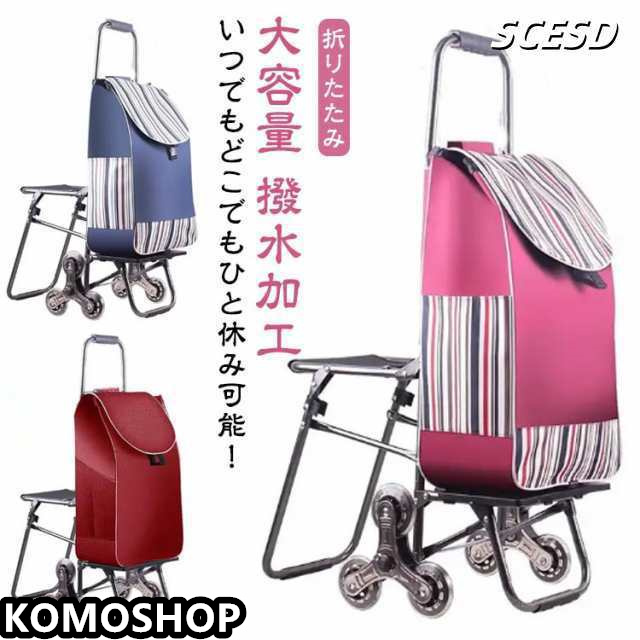 自立 ショッピングカート 座れる ショッピングキャリー キャリーカート 軽量 キャリーバッグ 買い物カート 大容量 撥水加工 防水 段差対応 折りたたみ エコバッグ 椅子付き 35L 階段対応 無地 ストライプ柄 おしゃれ 高齢者
