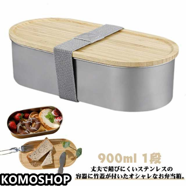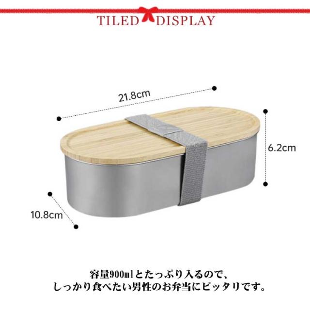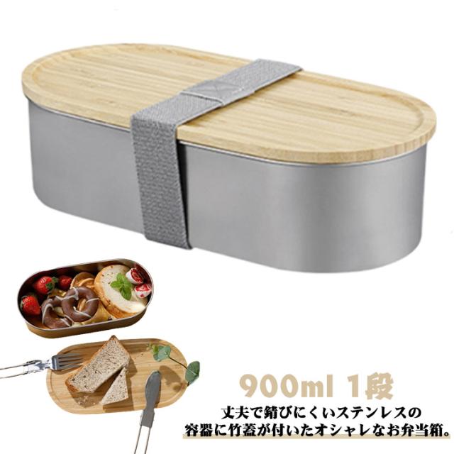 弁当箱 1段 900ml 弁当箱 男子 お弁当箱 大容量 ステンレス 大人 子供 ランチボックス 高校生 中高生 竹蓋付き 電子レンジ対応 シンプル おしゃれ 女性 男性 フードボックス ベルト バンド付 食洗機対応