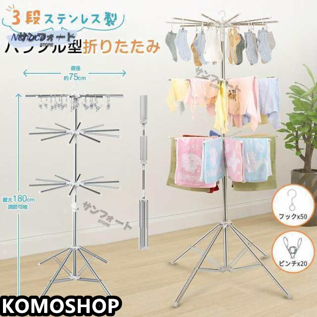 洗濯物干し 室内物干し 物干しスタンド パラソル型 折りたたみ たくさん干せる ステンレス製 3段 直径約75cm コンパクト 省スペース 高さ