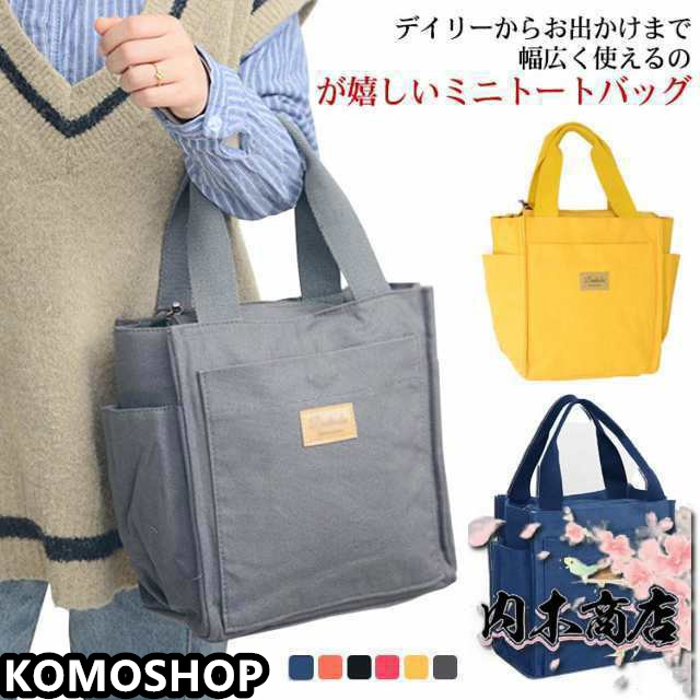 | ポケットが充実したミニトートバッグが登場! しっかりとマチがあるので見た目によらず沢山入るのが魅力的。 長財布や、ポーチ、ランチボックスなどすっぽり入ります。 両サイドのポケットは大きめに作られれているので500mlのペットボトルや、水筒、折りたたみ傘などが入れられます。 通勤、通学やお出かけなどに使いやすいサイズ感なので、年齢問わず使えるバッグです。 | |