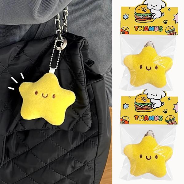 小さな星人形のぬいぐるみペンダント,黄色いキーホルダー,かわいいキーリングバッグ,キーリング,1〜3個