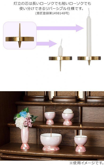 | やわらかい質感と2色の色の組み合わせが美しい仏具セットです。コンパクトサイズで使いやすさも追求しています。家具調仏壇やモダンな仏壇にもよく合います。 ※モニターの設定などにより、実際の商品と色味や素材の見え方が異なる場合がございます。あらかじめご了承ください。 |