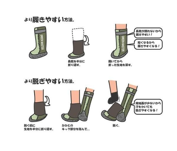| 伸縮性の高い合成ゴム生地を使用しているため、高い柔軟性を実現しました。足首やひざなどの屈曲部分もストレス無くご使用できます。 ※本品はゴム製品ですので、油やガソリンが付着しないように注意して下さい。 ※体質によっては、かゆみ、かぶれ、発疹等を起こす場合があります。異常を感じられたら使用を中止して下さい。 ※火のそばや高温になる場所での使用や放置は、変色、変形の原因となりますので、ご注意下さい。 ※鋭利なものは通する恐れがあります。また本品は安全靴ではありませんので、竹藪など危険な場所での使用はしないでください。 ※表面は一般的なゴムより破れやすいナイロン素材を使用していますので、引っ?き等の起こりやすい場所でのご使用にはご注意ください。 ※滑りやすい場所でのご使用は十分にご注意して下さい。 ※洗濯、乾燥、発汗等により、縮み、変色、色移りを起こす場合があります。ご注意下さい。 ※ご使用後は、小石やドロ等の汚れを良く落とし丁寧に洗って下さい。乾燥の際には日光を避け陰干しして下さい。 ※なるべく長靴を折り曲げないように古紙等を筒にして中に入れ、保管して下さい。 ※ポリ袋か箱に入れ、なるべく空気にさないように暗所で保管して下さい。 |