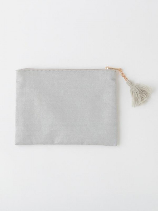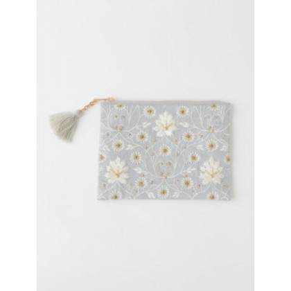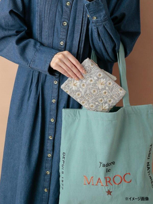 東京かんかん ビーズ刺繍ポーチL シルバー M42-2229SV |b03