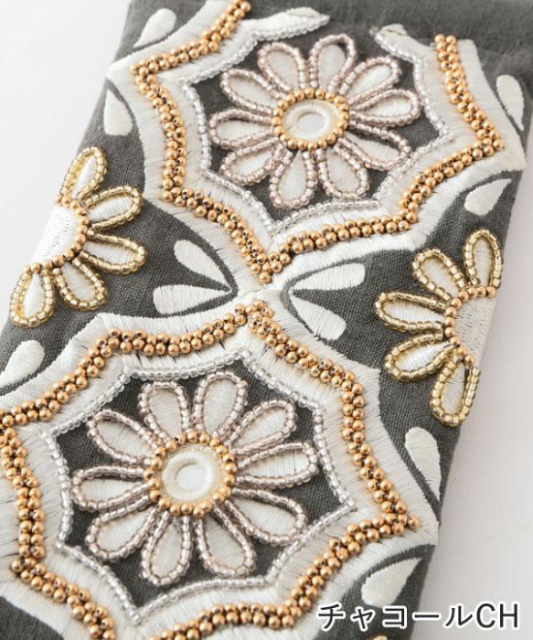 東京かんかん ビーズ刺繍メガネケース チャコール M42-2495CH |b03
