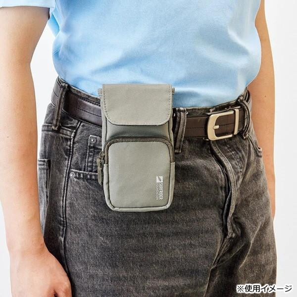 | スマートフォンと小物を一緒に持ち運びできるポーチです。撥水加工生地をメイン生地に使用しています。背面にはプラスチックナスカン、面ファスナー付きゴムバンド、ベルトループ付きです。ナスカンとゴムバンドでリュックのショルダーベルトにも取り付けられます。約6?7インチのスマートフォンが収納可能です。 ※ベルトの種類や形状によっては取り付けられない場合があります。 ※スマートフォンのサイズやカバーの有無によっては収納できない場合があります。 |