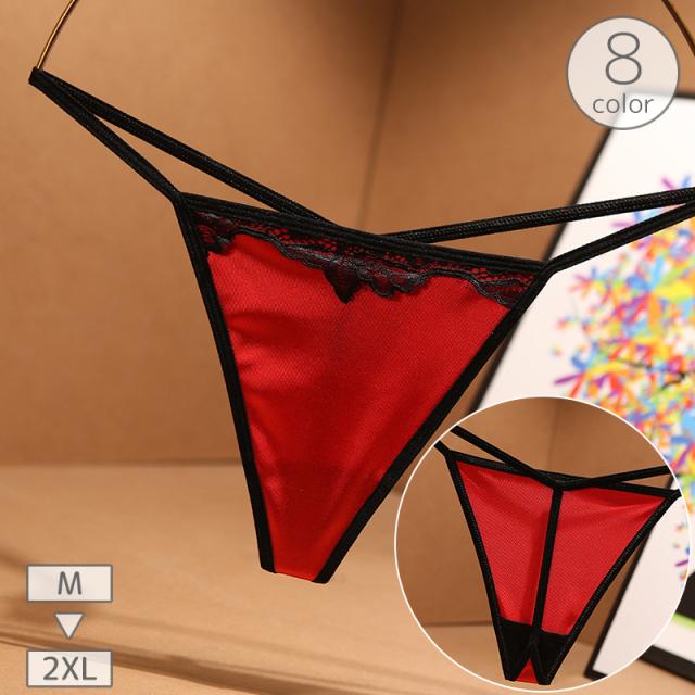 Tバックショーツ タンガ レディース 女性用 インナー 下着 パンツ サテン調 紐パン ストリング レース セクシー ランジェリ