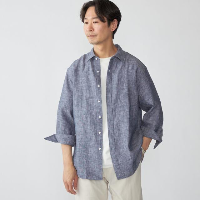 SHIPS定番 リネン100%の7分袖レギュラーカラーシャツ
