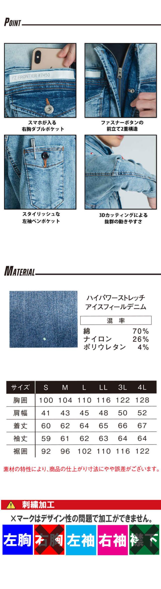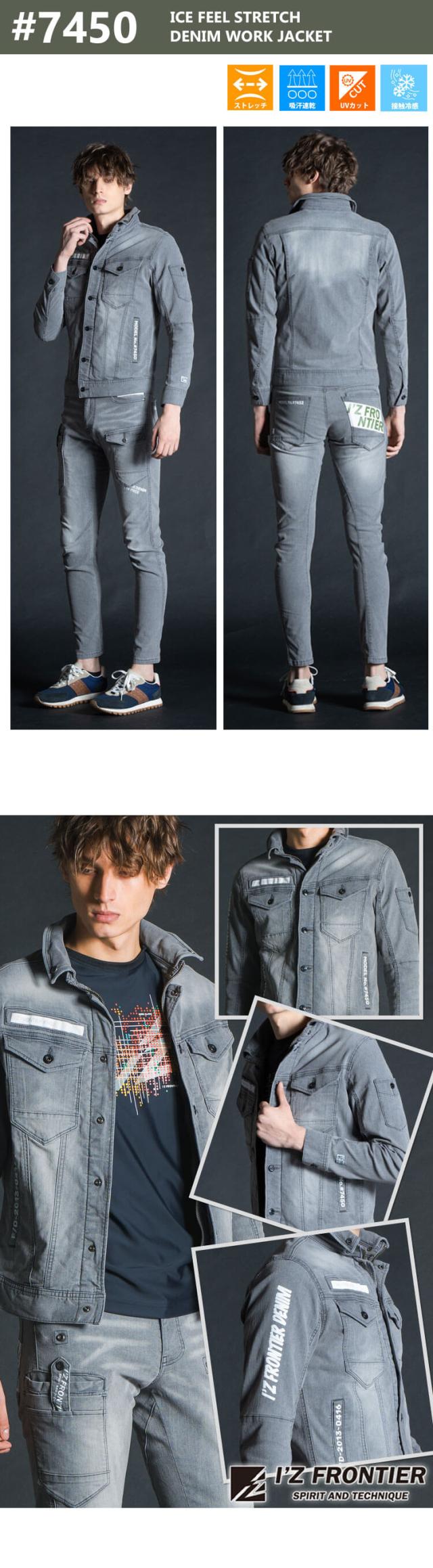 [即納]アイズフロンティア IZ FRONTIER 春夏 作業服 接触冷感ストレッチデニムワークジャケット 7450 スモークグレー 2025年春夏新作