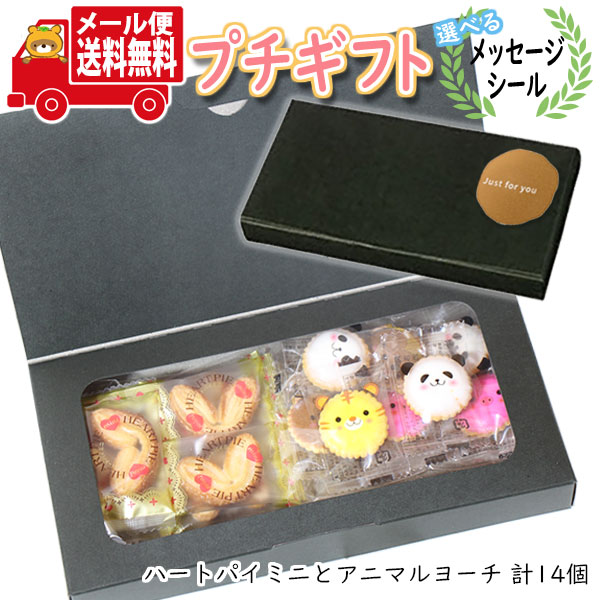 プチギフト お菓子 送料無料 【選べるメッセージシール】かわいいハートパイミニとアニマルヨーチの詰め合わせ プチギフトセット ミニギフト(omtmb9447t)【プチギフト 退職 個包装 お菓子 感謝 ばらまき 大量 お礼 お配り 転勤 異動 プレゼント