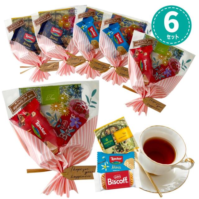 ◆【退職・異動・ご挨拶に】おしゃれで可愛い プチギフト 紅茶とお菓子セット(ピンク)3個×6セット 花束風ラッピング|春の贈り物・通年ギフトにおすすめ