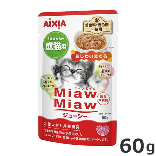 ★【今月のお買い得商品】アイシア MiawMiaw ミャウミャウ ジューシー 成猫用 あじわいまぐろ 60g パウチ ウェットフード キャットフード