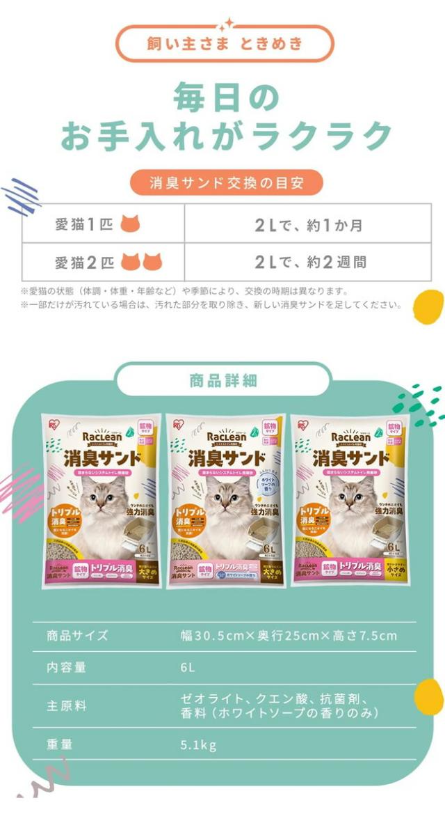 ・お手入れが簡単!固まらないシステムトイレ用猫砂、消臭サンド鉱物タイプです。