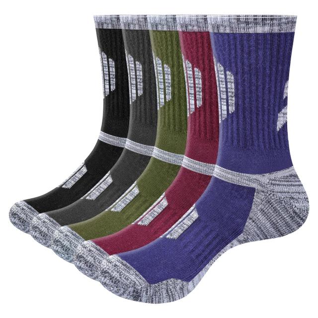 YUEDGE メンズ 通気性 綿 クッション 厚手 靴下 登山スポーツソックス 5足? (ブラック/ダークブルー/ダークグレー/オリーブグリーン/レ
