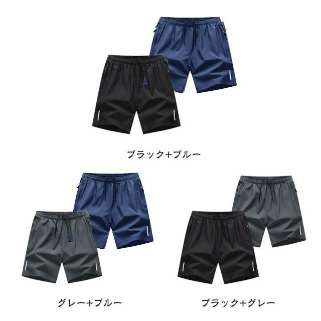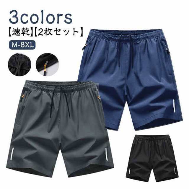 【2枚セット】ハーフパンツ 速乾 ドライ 通気性 ショートパンツ 無地 ポケット付き スポーツ 半ズボン 夏 大きいサイズ 薄手 おしゃれ カジュアル パンツ 短パン ランニング ゴルフ ジャージ下 夏服 夏物 黒 ネイビー グレー