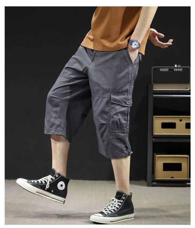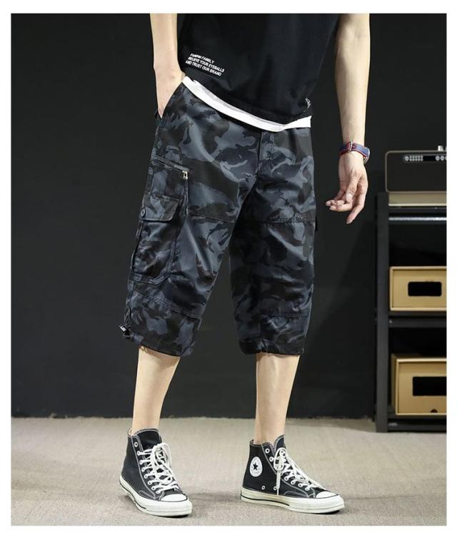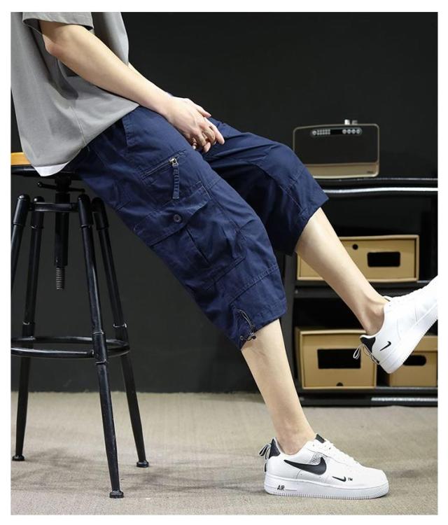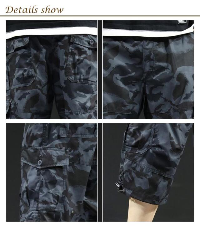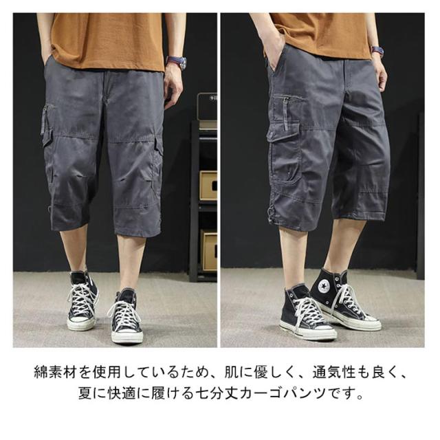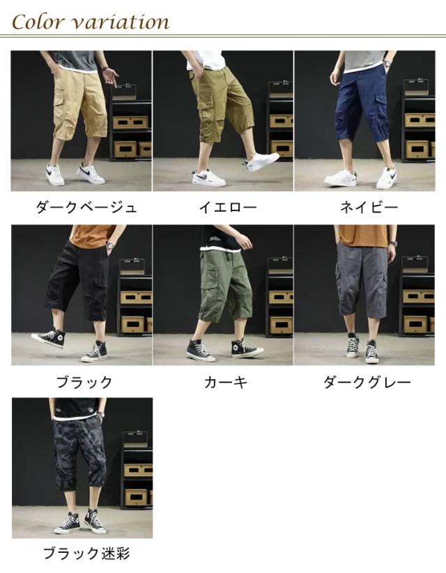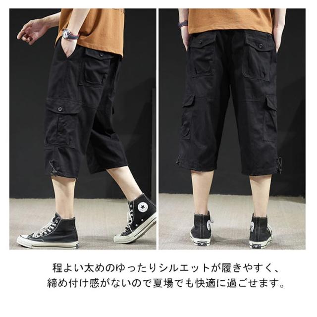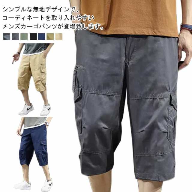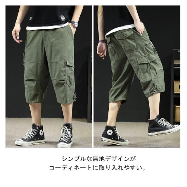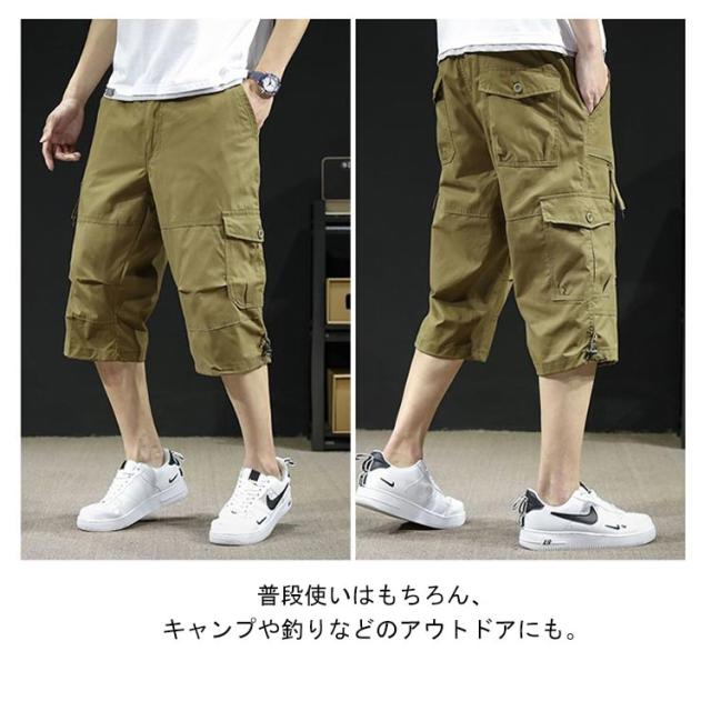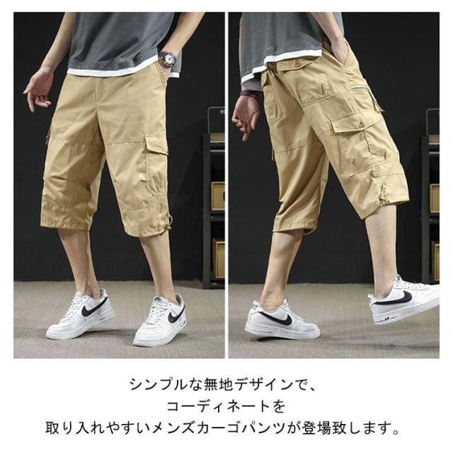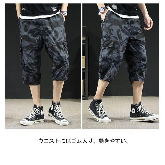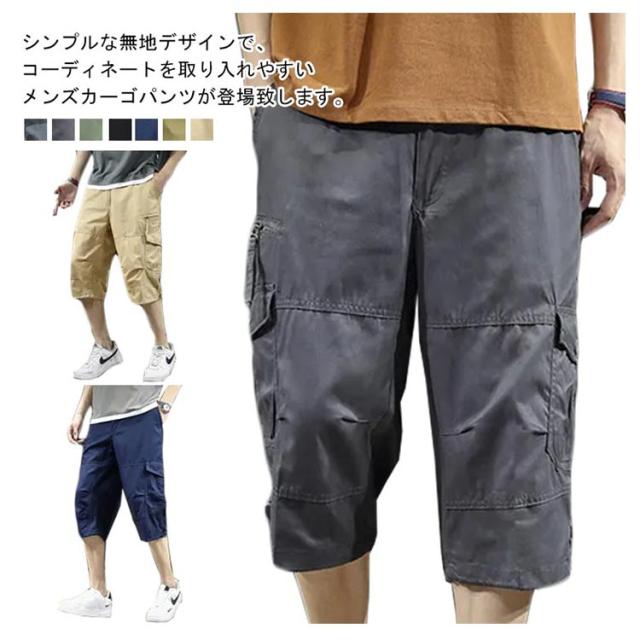 カーゴパンツ 7分丈 メンズ ハーフパンツ クロップドパンツ 春夏 ボトムス ミリタリー ハーフパンツ 迷彩柄 ズボン 大きいサイズ 無地 ゆったり ウエストゴム アウトドア カジュアル