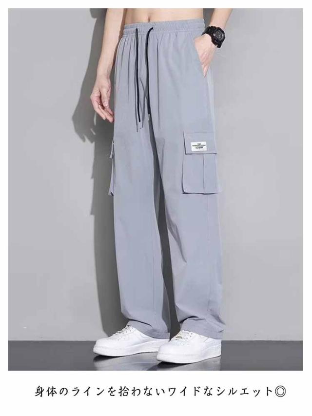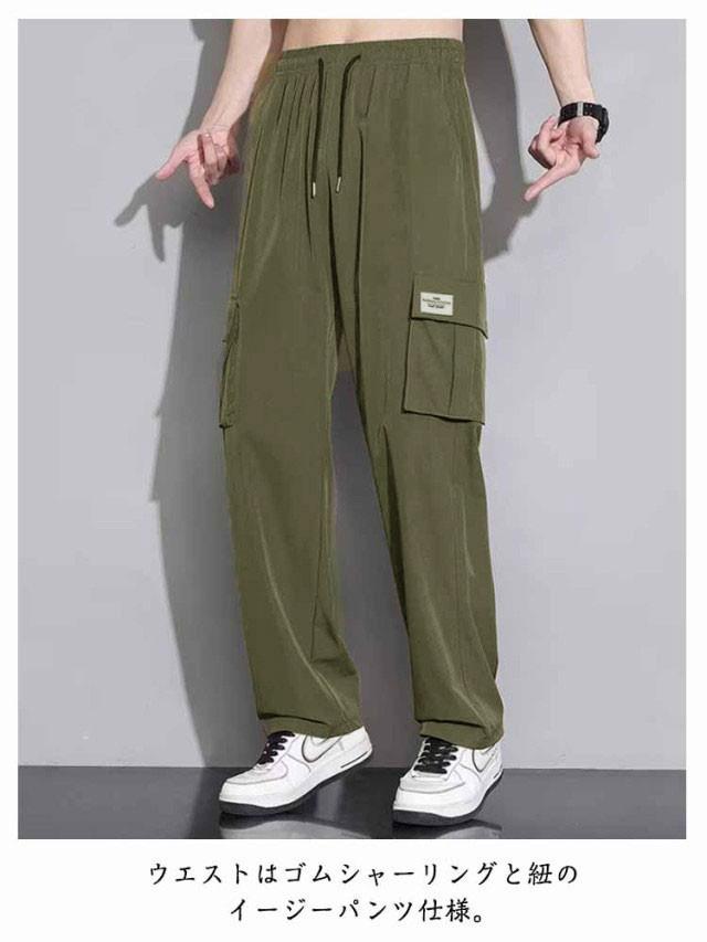 カーゴパンツ メンズ 接触冷感 パンツ ワイドパンツ 薄手 夏 涼しい ひんやり メンズ ボトムス オーバーサイズ ゆったり イージーパンツ カーゴ アメカジ ミリタリー ワークパンツ ウエストゴム ポケット 軽量 大きいサイズ ロング丈 春 春服 夏 夏服 送料無料