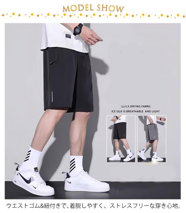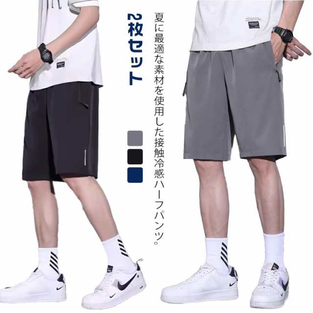 2枚セット 接触冷感 ハーフパンツ メンズ 夏 薄手 イージーパンツ ストレッチ 伸縮性 涼感 ひんやり 膝丈 五分丈パンツ ショートパンツ 短パン ポケット付き 吸汗速乾 通気 ドライ シェフパンツ ゆったり 大きいサイズ スポーツ カジュアル 送料無料 L-5XL