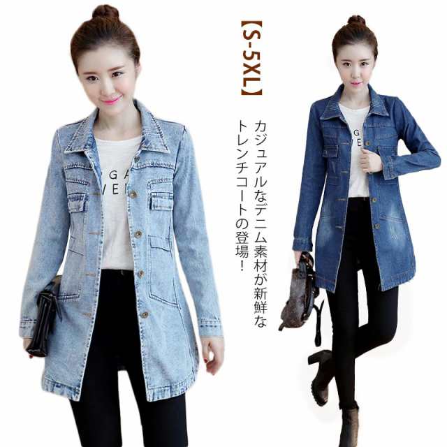 S-5XLサイズ!春服 デニムコート デニムトレンチコート シャツコート デニム アウター トレンチコート ミディアム コート Gジャン 春コート スリム 大きサイズ 長袖