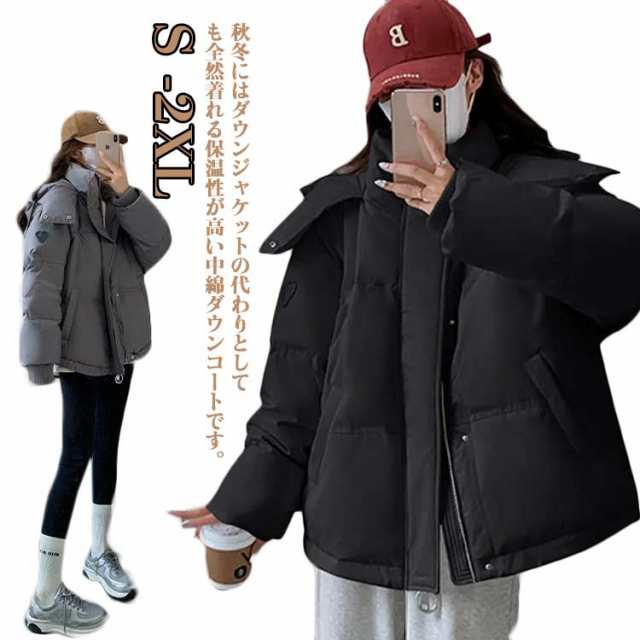 S 韓国風 大人 ダウンジャケット 冬アウター 大きいサイズ ショートコート ミドル丈 キルティング 冬服 中綿コート きれいめ フード付き 中綿ジャケット 秋服 レディース 通勤 OL 体型カバー カジュアルコート 防風 防寒性抜群 中綿コート M L XL 2XL