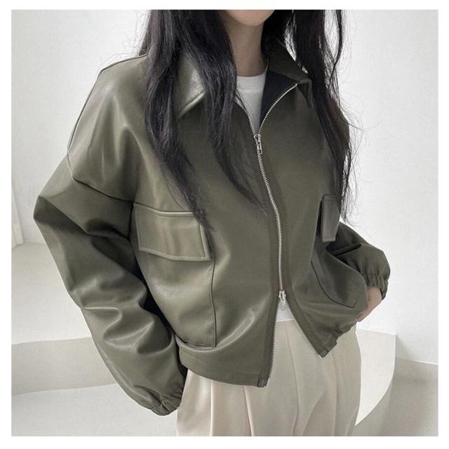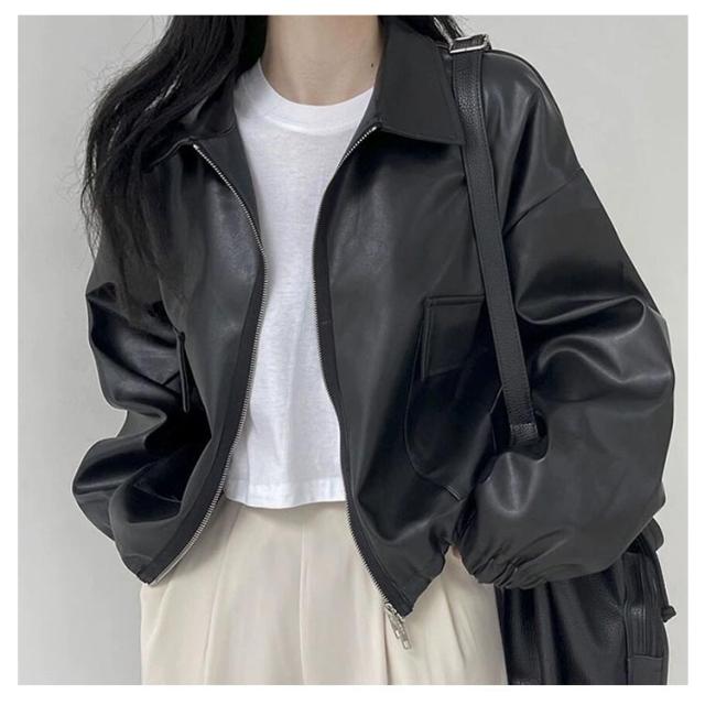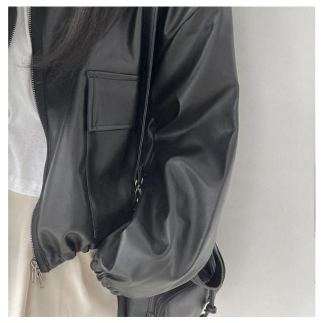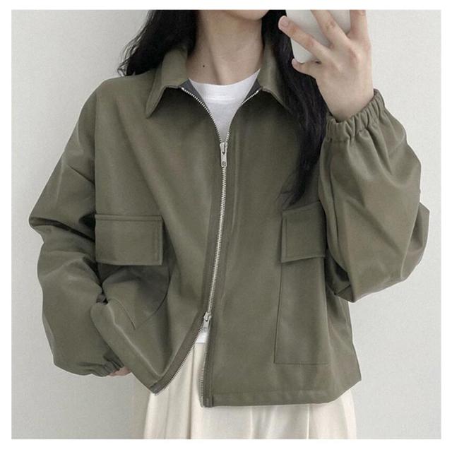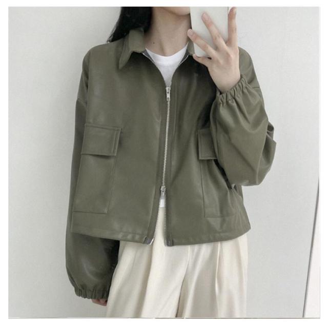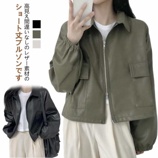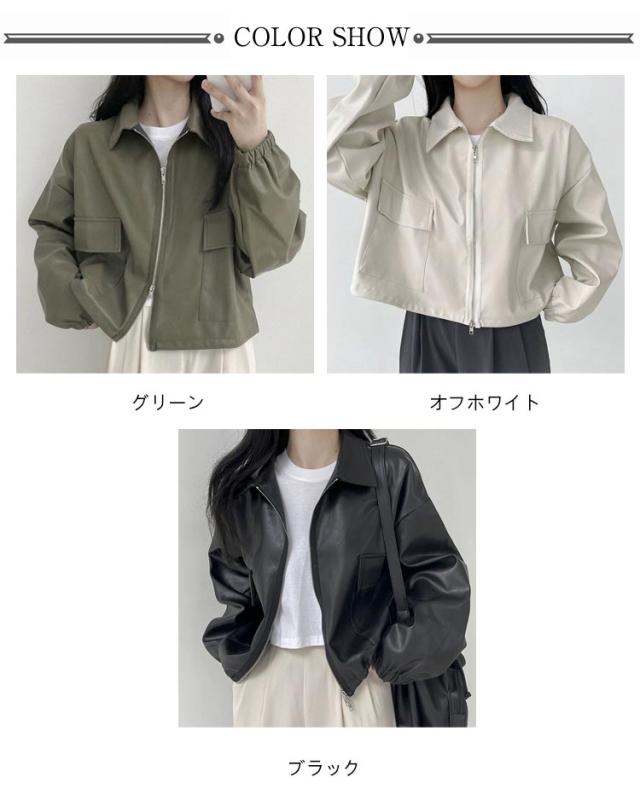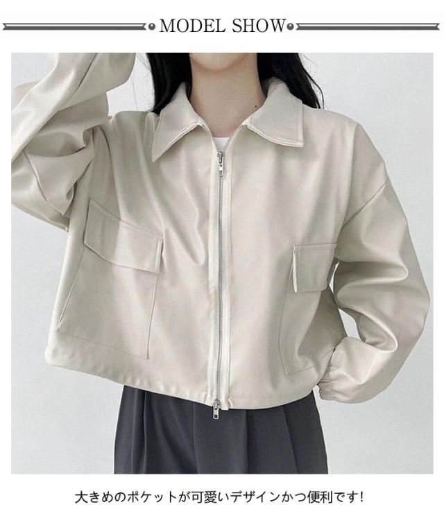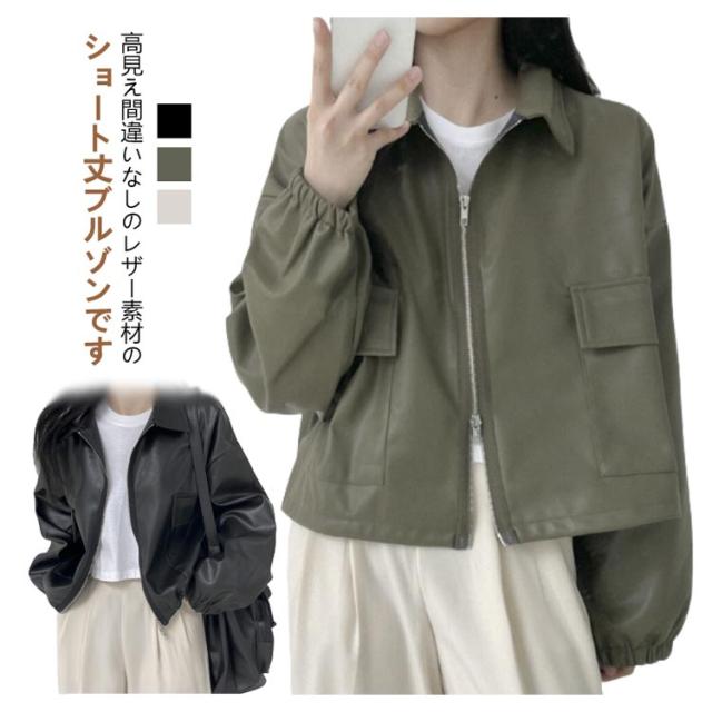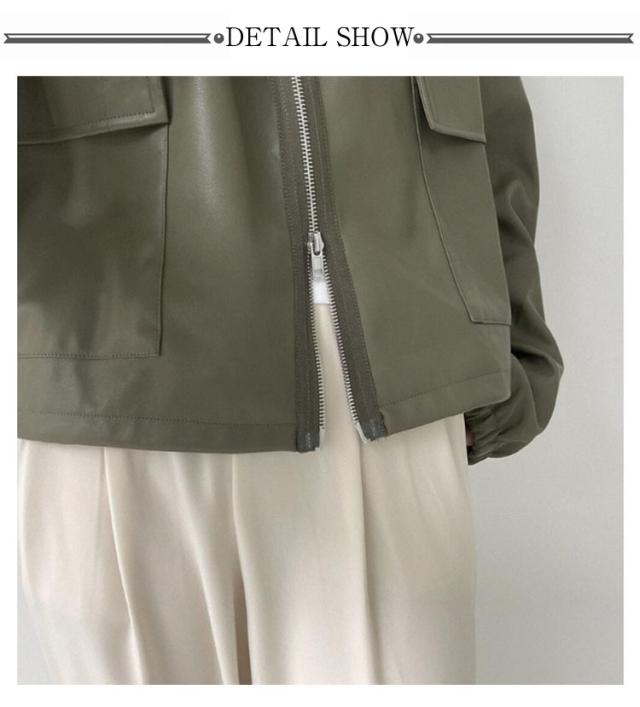 レザージャケット ジップアップ フェイクレザージャケット 長袖 アウター ショート丈 ミリタリージャケット ブルゾン ライダースジャケット ゆったり きれいめ シンプル おしゃれ 大きいサイズ レザージャケット カジュアル 秋 冬 春