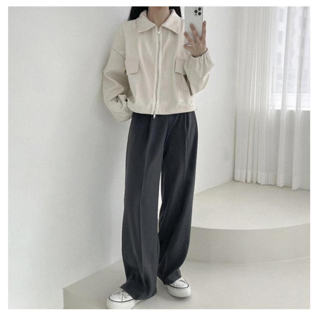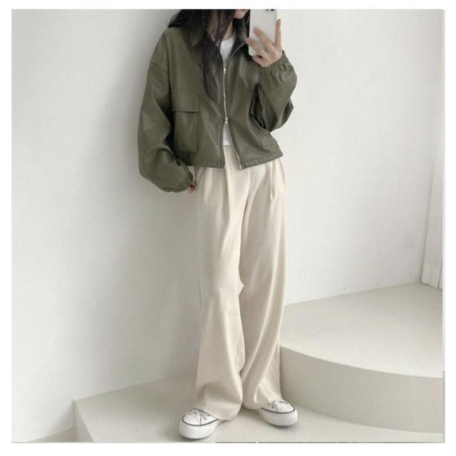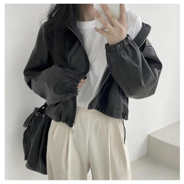 | 高見え間違いなしのレザー素材のショート丈ブルゾンです。 大きめのポケットが可愛いデザインかつ便利です! さらに、裾を絞ってコーデの印象を変えていただけます♪ ワイドパンツやデニムでカジュアルにもミニスカートでガーリーにも着回し万能です! | |