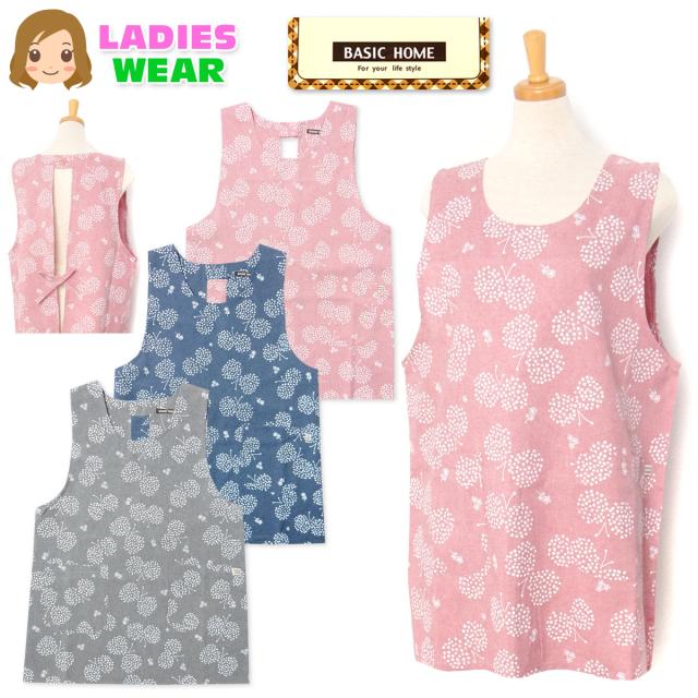 【送料無料】婦人 レディース ラン型 エプロン 後ろボタン&ひも留め 蝶柄 ポケット付き sl-0563【メール便対応】