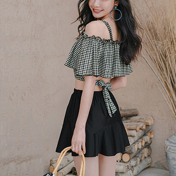 ショートパンツ ギンガムチェックトップス ハイウエストスカート 水着セット 露出控えめ スイムウェア体型カバー おしゃれフリル ビキニ水着 可愛いビーチウェア セパレートみずぎ