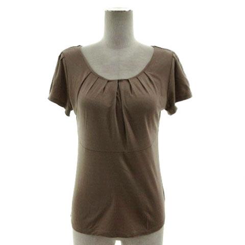 【中古】アマカ AMACA カットソー ボートネック タック 半袖 ブラウン系 茶系 38 レディース