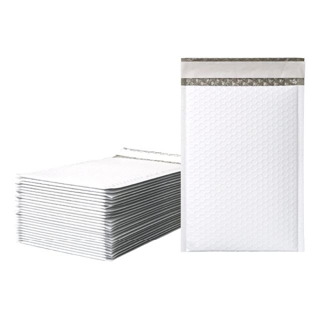 耐水性、緩衝性バツグン! ポリエチレン製クッション付き封筒。 表面もポリエチレンなので雨や水濡れ、破れなどに強く耐久性に優れています。 フタにテープがついているので、内容物のサイズで折ることができます。 清潔感のある白いパッケージだから宛名表記も見やすい! PEシートが貼ってあるから平滑! 中に物を入れやすい3層構造。