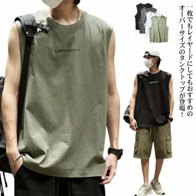 タンクトップ メンズ ノースリーブ カットソー tシャツ クルーネック ゆったり オーバーサイズ スポーツ カジュアル トップス ルーズ ロングタンクトップ 春 夏 ルームウェア 部屋着 大きいサイズ M L XL 2XL 3XL シンプル